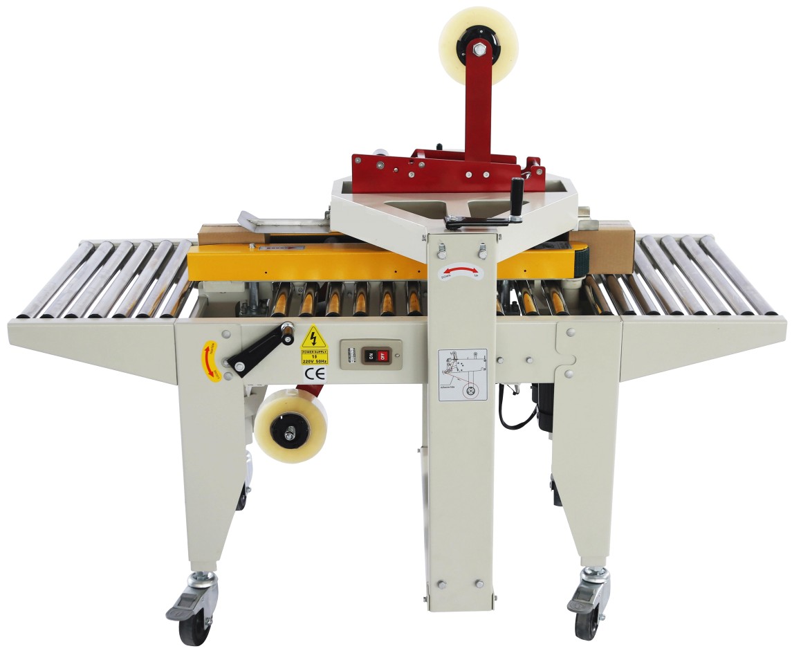Encintadora diseñada para e-commerce para sellar cajas pequeñas. Transporte por correas laterales, dispositivo que estabiliza el cabezal y sellado superior e inferior automático. Previene defectos típicos (alabeo, cinta torcida) y logra un acabado prolijo y consistente. Ajuste manual de ancho y altura, operación simple y sin mantenimiento.