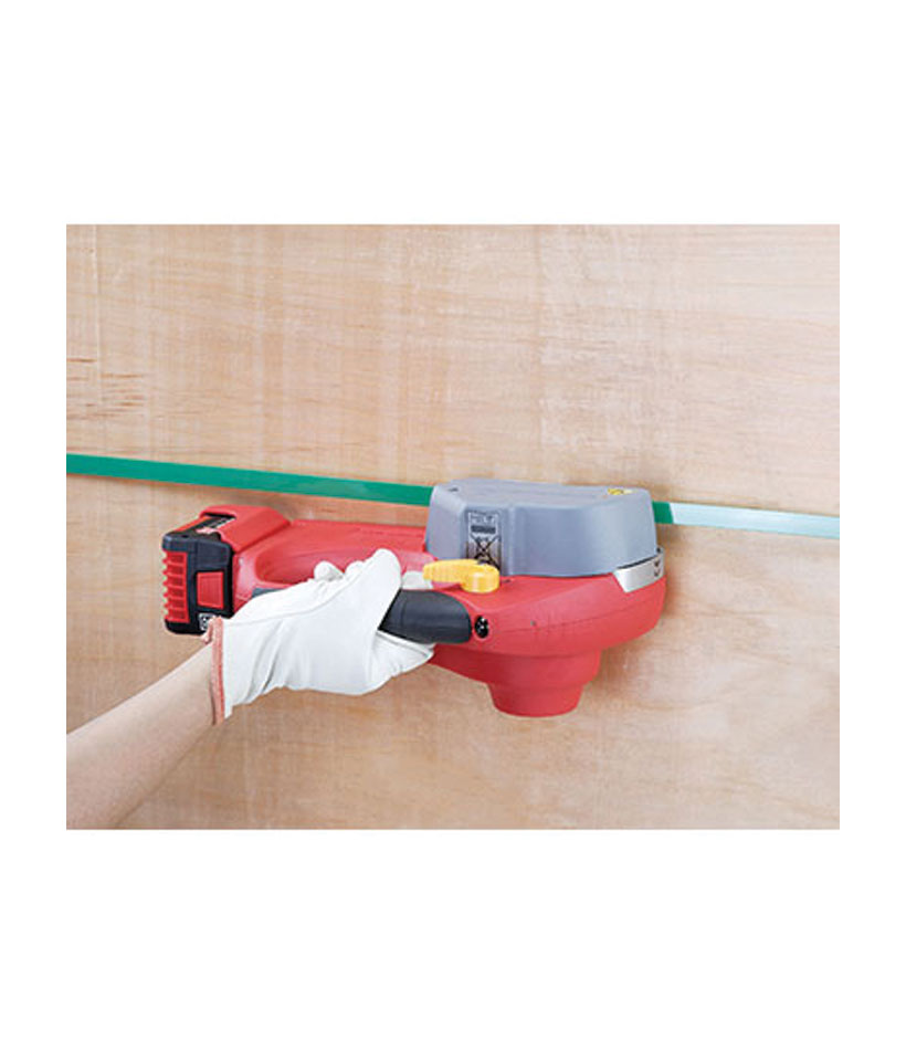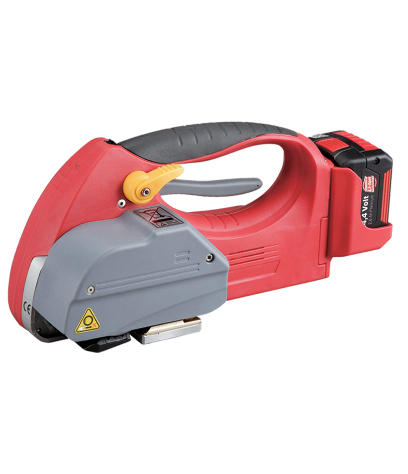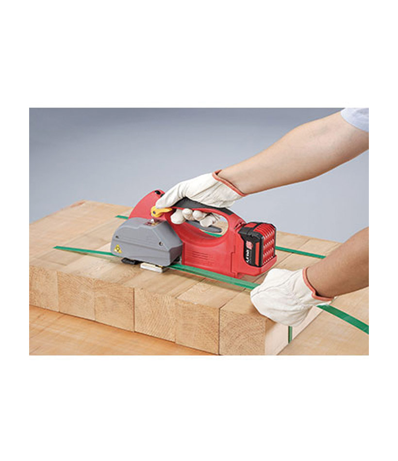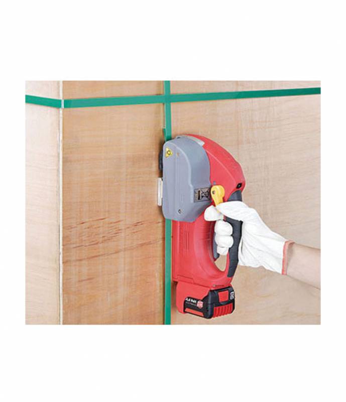 Además, brinda un sellado de flejes PET y PP sin necesidad del uso de sellos o hebillas. Tiene un amplio rango de tensión de flejado. Equipada con baterías de litio primera marca.